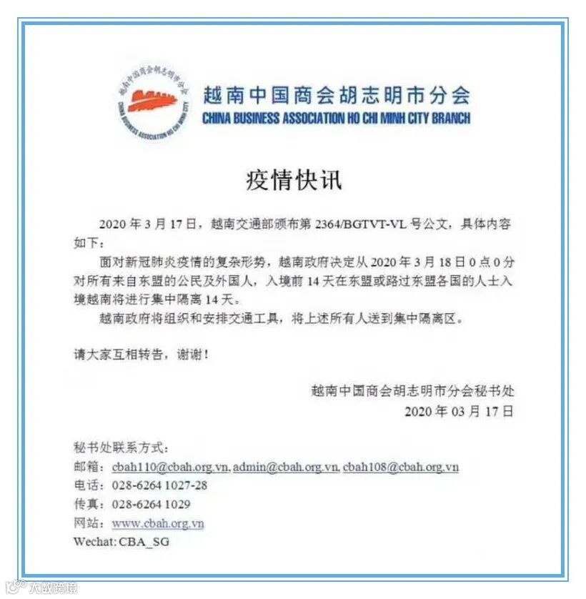 越南海关关闭柬越两国边境,司机需要隔离14天才可以回去越南,现在所有柜子都要走西港,不过坏消息是已有货代表示西港也开始塞港了。另外,面对疫情的复杂形势,越南政府决定从2020年3月18日0时起对所有来自东盟的公民及外国人,入境前14天在东盟或路过东盟各国的人士入境越南将进行集中隔离14天。