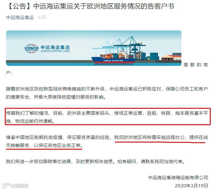 多个欧洲国家都强调,国际货运活动将继续进行。中远海发布公告: