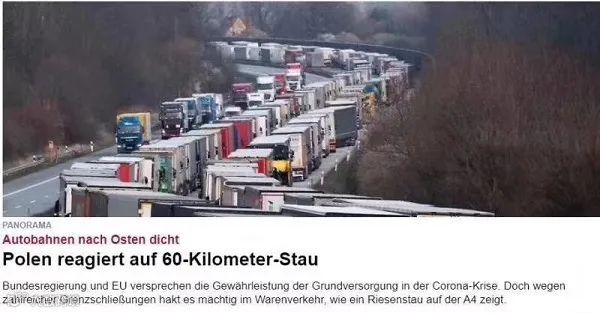 由于防疫措施目前主要影响客运和部分公路运输,虽然国际货运收到一定影响将继续进行,但陆运物流企业,受到的影响就大了。德国和波兰的连接的高速公路已经拥堵不堪,堵塞长度经达到60公里。