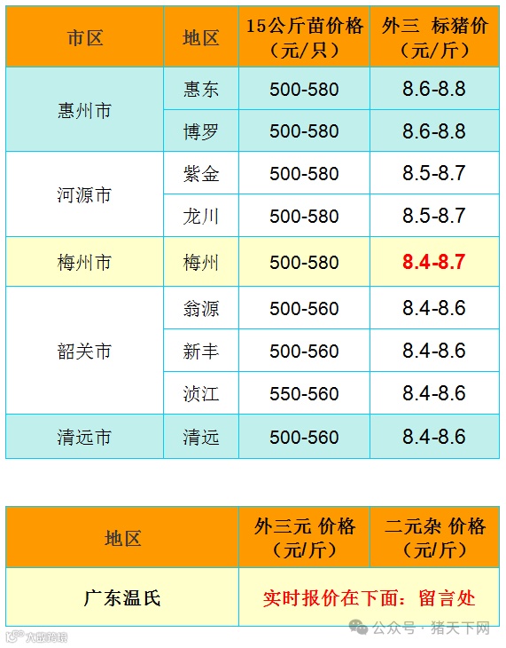 感谢您抽出 · 来阅读此文 温馨提示 广东猪价在底部 业务联系 13827571978 (会员信息栏) 01【买卖】:大量收购一 二胎母猪,淘汰老母猪,70-198斤中猪。(欢迎中介,售合作,茶水丰厚)清远,韶关,惠州,河源。两头收。本公司有大小车数辆,一呼即到:13926269381/13922388700 陈发。东莞丽华食品有限公司。金猪送福,招财进宝,2022年.祝养猪的朋友们,发!发!发!联系时,请说明猪天下网。 02【买卖】:①江西加大集团,全国前三育种企业,全国最大双阴种猪企业,1200头杜洛克群体,自建自营公母同场同源,6万头种培场;②品系:法/美系双阴种猪,繁殖性能高,料比低,生长速度快,供港体型;③产品:7Kg二元/纯种母苗,50公斤二元/纯种,30-90孕龄有囍种猪,大白/长白/杜洛克公猪。欢迎有种猪资源省级代理及中介合作(丰厚简单快)吴生:13822692399。联系时,请说明猪天下网。 03【买卖】:大量收购各地拆迁,禁养,升级改造的猪场二手设备,定位栏,各类产床,保育栏等,以及一切猪场废品,可全场打包,本公司有专业拆卸队伍和运输车辆,资金到位,处理速度快,欢迎咨询:13822434423,锋仔。联系时,请说明猪天下网。 04【买卖】:复兴家庭农场,资源整合,您有场,我有种猪,寻求弃养/空置场合作,生物安全好,交通方便,肇庆/清远/韶关/河源/惠州域内有500头以上母猪场,有保育舍,部分育肥舍配套或1500头以上育肥场,有环保设施,证件齐全,有效期在5年以上,合作模式面议;(微信同号)13217607792。联系时,请说明猪天下网。 05【招聘】:广东省清远市阳山县大型全自动高效育肥养猪场高新招聘(55岁以下夫妻或单工)熟手养猪工人多名(会打疫苗丶处理基本猪病),责任心强丶服从安排丶适应封闭管理丶包吃宿,有空调丶热水丶wifi,联系人张老板13631088331。联系时,请说明猪天下网。 猪天下网,一个养猪人离不开的手机应用,查猪价、竞拍猪、招聘求职非常方便,是互联网+农业重点发展的开放信息平台