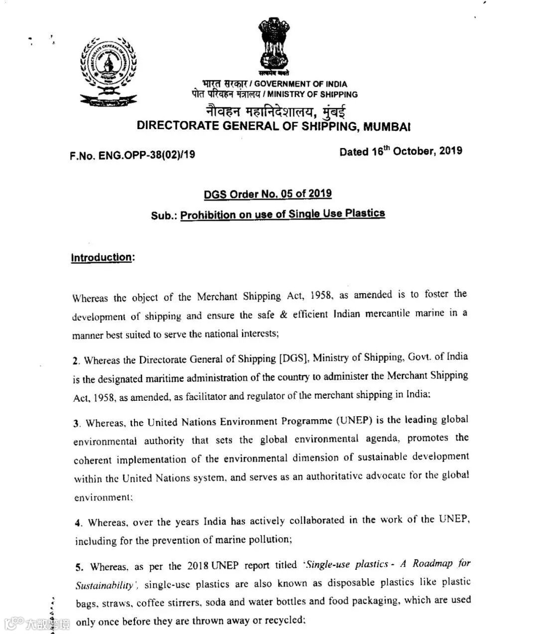 近日有媒体报道,据一份印度海事部门下发给当地一家大型航运公司的文件显示,印度将禁止在所有停靠印度港口或经过印度水域的船只上,使用一次性塑料制品,其适用对象包括,所有的印度籍船舶和在印度港口或航经印度水域的船舶,这或将使印度成为世界上第一个施行此类“禁塑令”的国家。