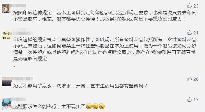 印度海事部门表示,所有船舶在进入印度水域前,尤其是靠泊港口前,必须将所有禁止使用的塑料制品进行封存。