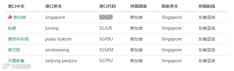 新加坡港并非新加坡所有港口的统称,而是特指其中一个。新加坡共有五个港口。新加坡港代码SGSGP。
