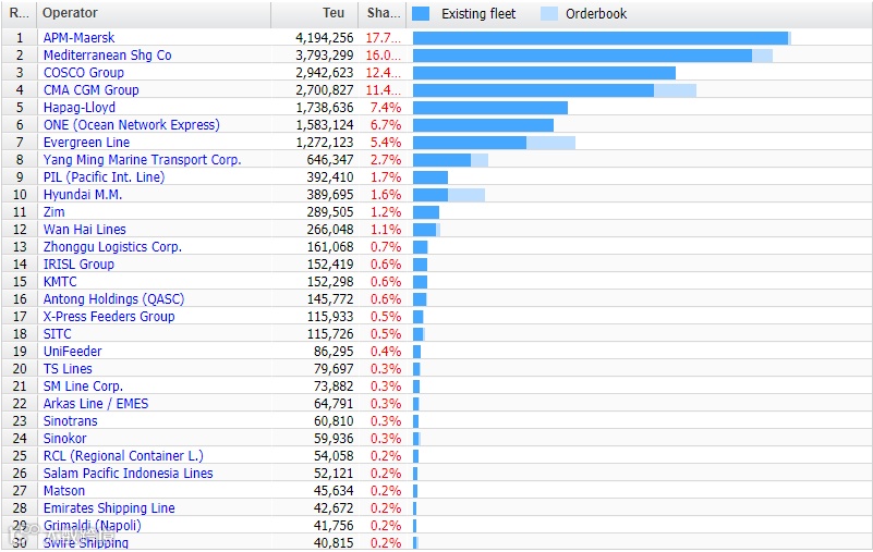 2018年7月中远海运与上港集团联合要约收购东方海外,收购完成后,东方海外成为COSCO旗下公司,虽然品牌独立,但已从Alphaliner全球运力排行榜消失!
