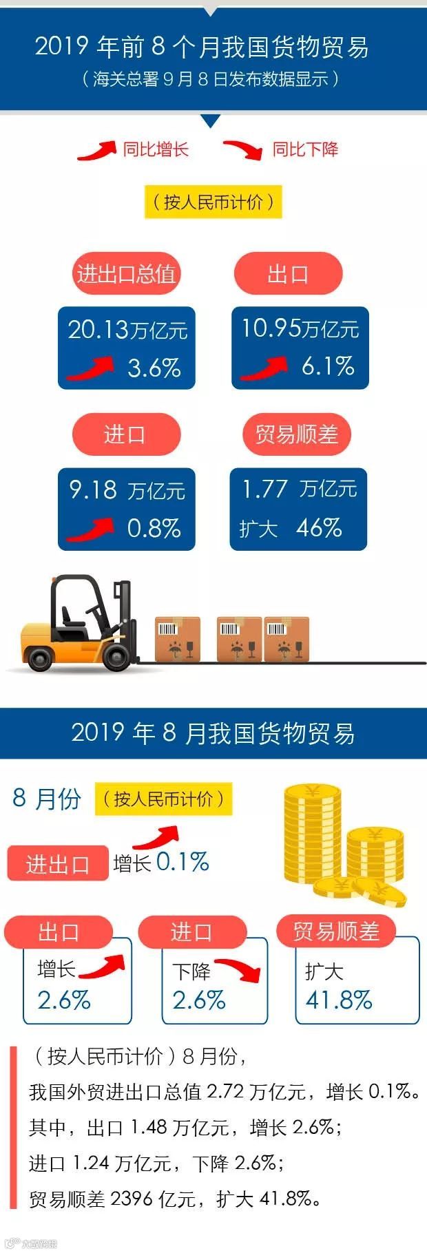 8月进出口增速双降,前8月贸易总额增长3.6%,中美进出口额双降!