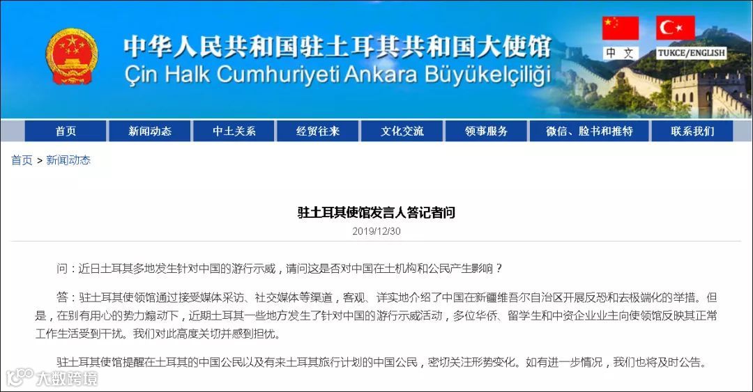 近日土耳其多地发生针对中国的游行示威,请问这是否对中国在土机构和公民产生影响?