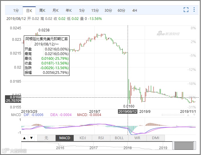 8月11日,阿根廷总统初选结果公布,现任总统马克里意外的初选失败,反对派候选人费尔南德斯大幅领先,阿根廷股市、汇市一度遭受重创。阿根廷比索对美元汇率一度暴跌超过20%,创下2015年以来最大单日跌幅。