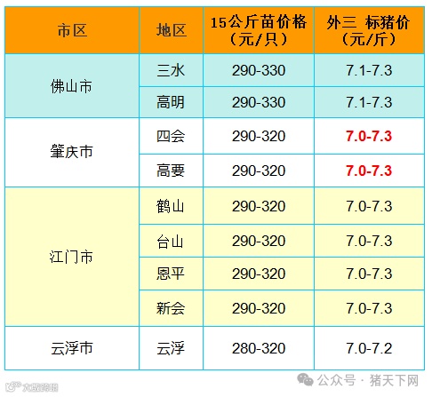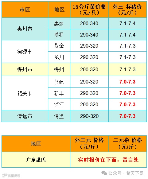 有红绿颜色部分是相对昨天有所变动的猪价;
