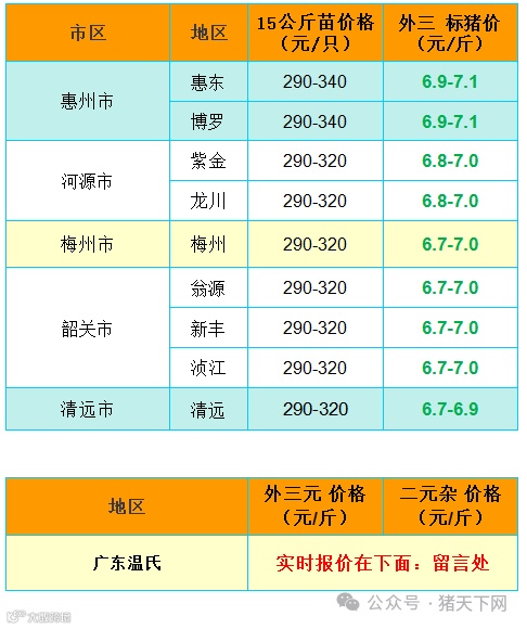 APP报价 -11日  广东猪价行情     温氏调2毛 猪天下网