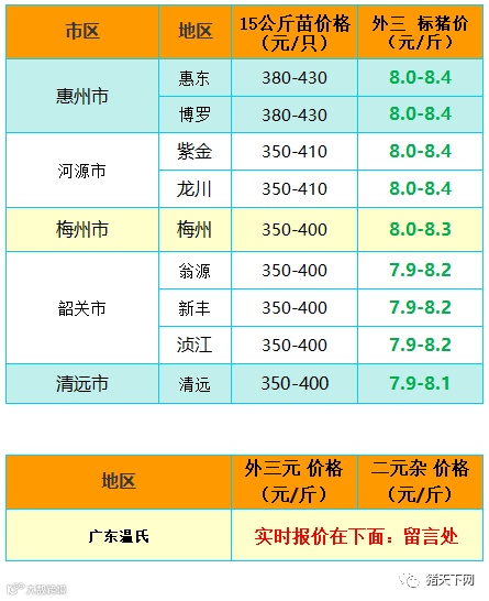 有红绿颜色部分是相对昨天有所变动的猪价;