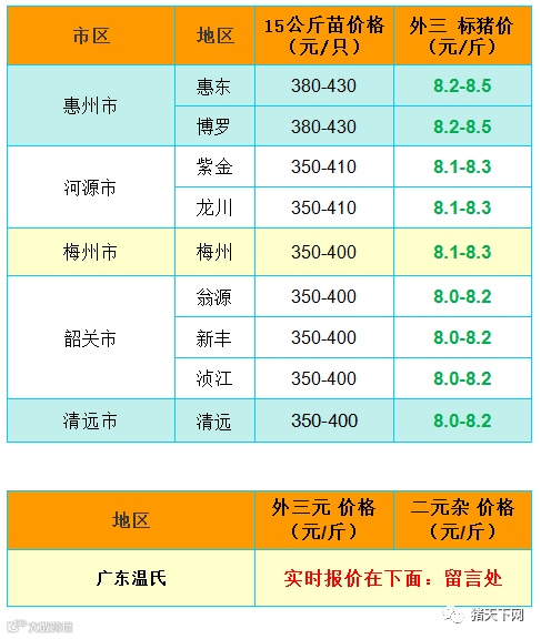 有红绿颜色部分是相对昨天有所变动的猪价;