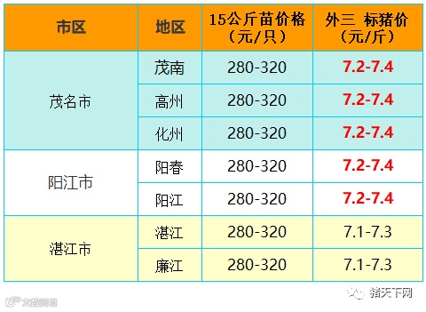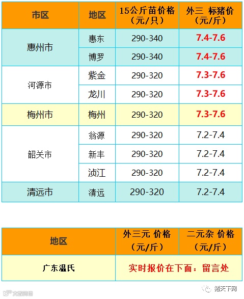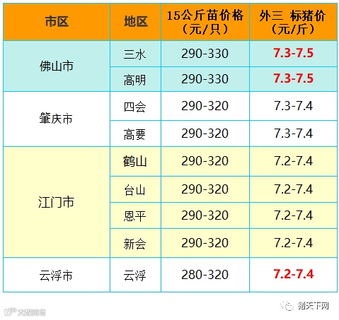 有红绿颜色部分是相对昨天有所变动的猪价;