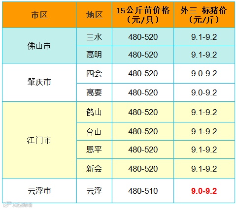 备注:猪价为喂湿料猪至喂干料猪出栏价格;