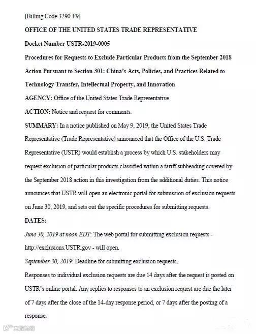 3、最新:6月19日,美国贸易代表办公室发布公告,准备正式启动2000亿美元征税清单产品排除程序。