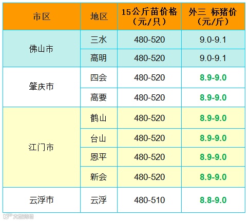 备注:猪价为喂湿料猪至喂干料猪出栏价格;