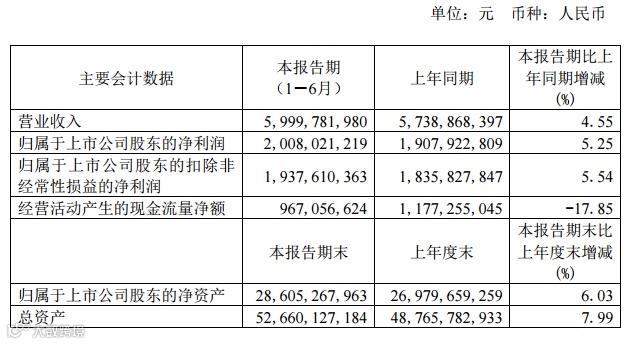 实现营业收入60亿元,同比增长4.55%。归属于上市公司股东的净利润20.08亿元,同比增长5.25%。