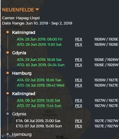 ▲集装箱船NEUENFELDE的船期和航线