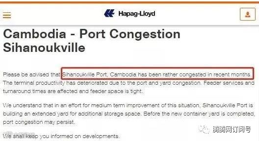 近日,赫伯罗特航运官方网站发布了一则通告,告知了客户:柬埔寨最大港口-西哈努克(Sihanoukville)港正面临着严重拥堵,该情况已经导致供应链中断。