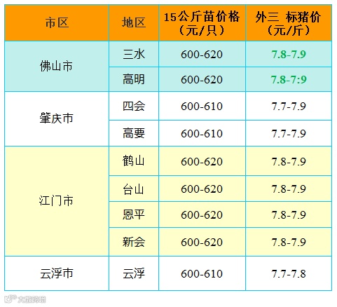 备注:猪价为喂湿料猪至喂干料猪出栏价格;