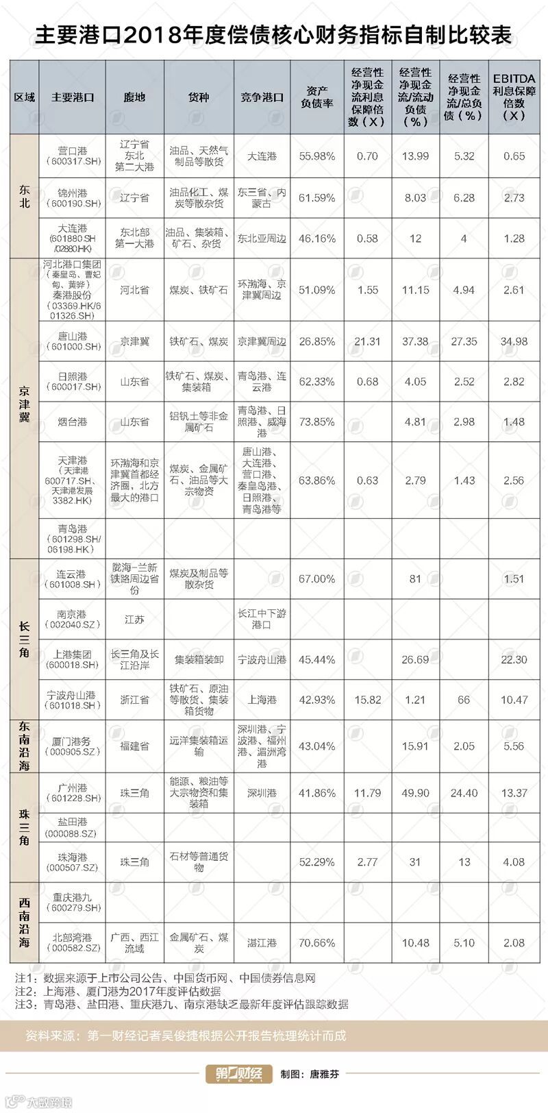 另外,环渤海、东北地区为代表的北方主要港口不同程度面临着较大的偿债压力。