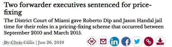 美国司法部反垄断部长马坎·德尔拉希姆(Makan Delrahim)表示,“通过违法操控,这家货代将运费提高了20%,这伤害了客户的利益。