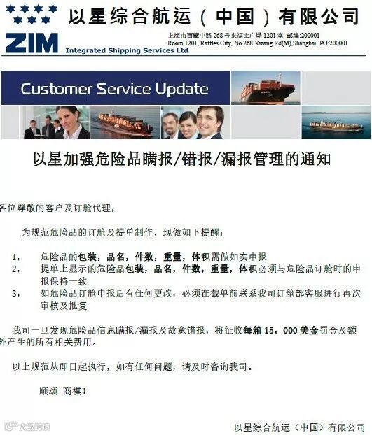 以星航运发布了加强危险品瞒报/错报/漏报管理的通知,其表示,从通知公布之日起,一旦发现危险品信息瞒报/漏报以及故意错报,将收取15000美元/箱的罚金及额外产生的所有相关费用。