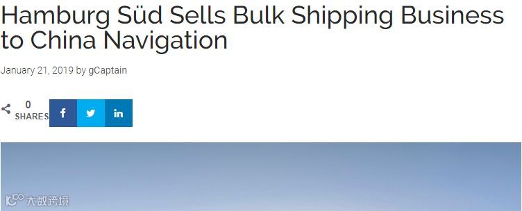 1月21日,总部设在新加坡的太古轮船(CNCo)与汉堡南美达成协议,汉堡南美(Hamburg Süd)将其旗下散货运输业务出售给太古集团的子公司太古轮船,汉堡南美将继续专注于两个集装箱航运品牌汉堡南美和Aliança的班轮运输业务。