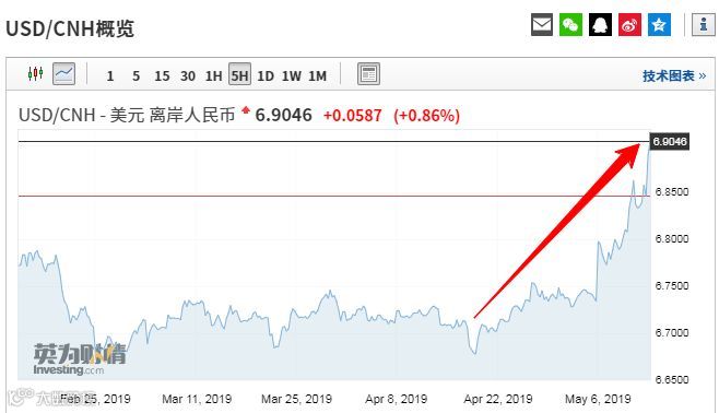 中国金融期货交易所研究院首席经济学家赵庆明认为,在当前两大国经贸磋商遇挫的情况下,人民币汇率会走弱,不排除再次走低至6.97附近,但是不会轻易跌破7的整数关口,不过需要注意的是,从历史经验来看汇率走弱会伴随股市走弱,新兴市场国家容易发生“股汇双杀”行情。(有新兴市场国家客户的朋友们需要注意了!)