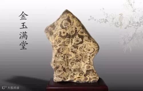 灵璧纹石:颜色青黑,表面有直线、弧线、圈线及金钱、蝴蝶、祥云中一种或多种不规则状纹理。