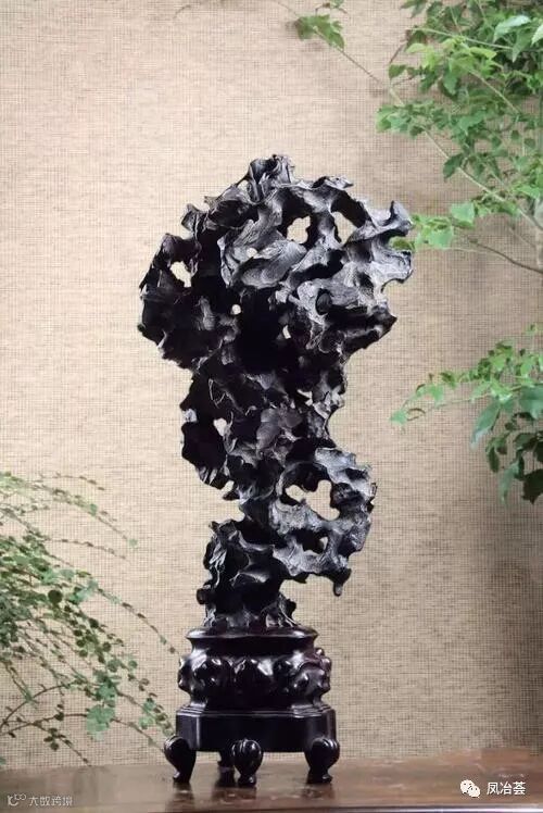 青黛灵璧石:颜色青黑,敲击发出清脆声音。