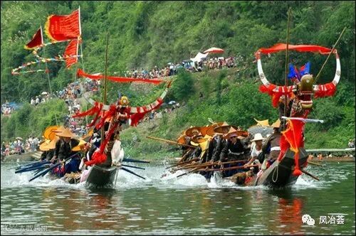 清(同治)徐家翰《苗疆闻见录》:“(苗人)好斗龙舟,风以五月二十日为端节,竞渡于清江宽深之处。其舟以大整木刳成,长五、六丈,前安龙头,后置凤尾,中能容二、三十人。短桡激水,行走如飞。”