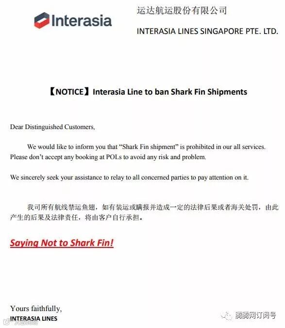 IAL关于所有航线禁运鱼翅通知