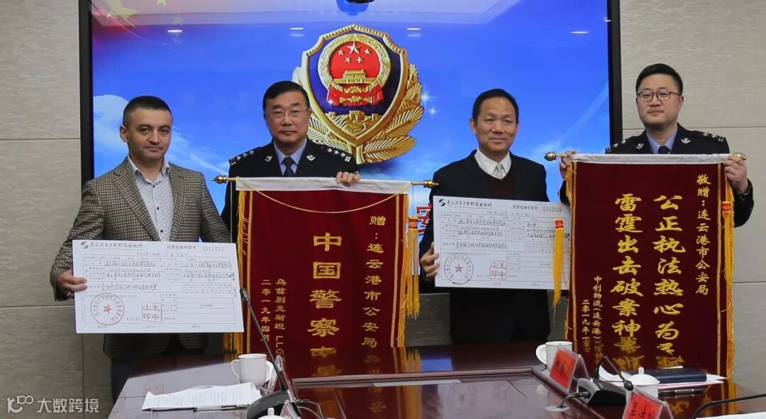 4月17日上午,连云港市公安局举行“7.2”涉外合同诈骗案涉案资金返还仪式,乌兹别克斯坦塔乐普拉斯特公司业务经理马提拉在收到发还的137万余元被骗钱款后,连声称赞并送上一面印有“中国警察真棒”的锦旗,对连云港警方高效办案、快速破案,及时为企业挽回经济损失表示衷心的感谢。