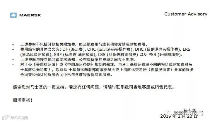 MSK调整出口附加费通知