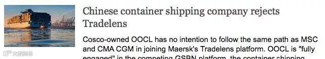 据外媒报道,6月2日,中远海运旗下的东方海外拒绝(reject)了马士基的Tradelens!