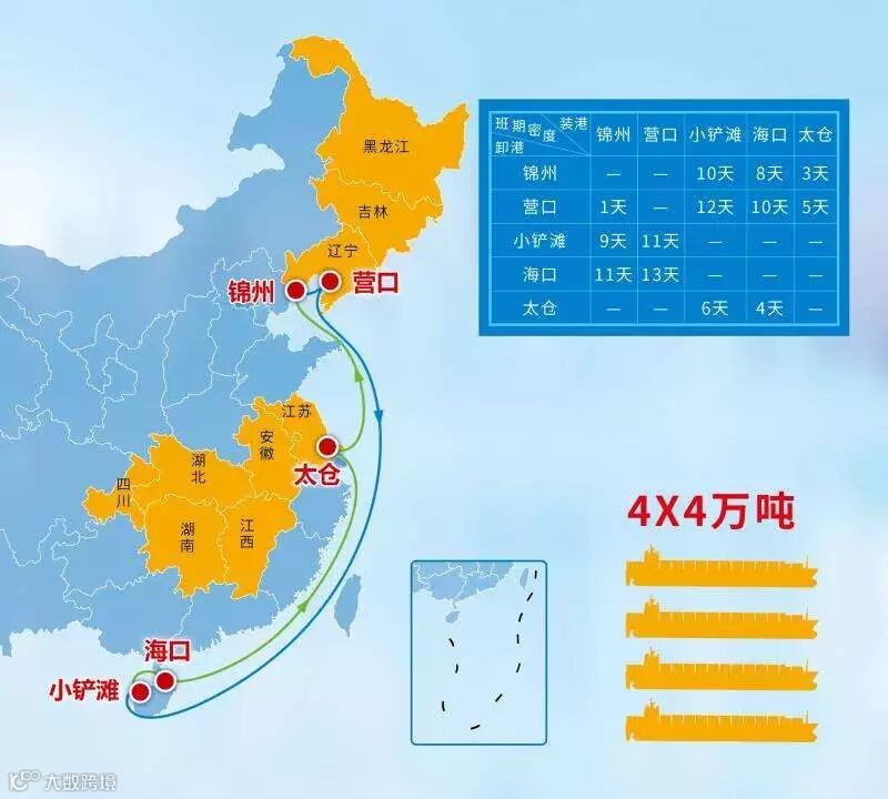航线投入4条4万吨以上船舶,船期稳定,交货期领先