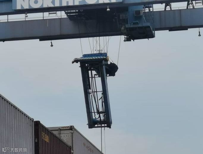 巴生北港一龙门吊钢绳断裂,集装箱掉落,拖车被砸。本次事故暂无人员受伤,事故原因正在调查。但事故原因被猜测可能是集装箱超重引起。
