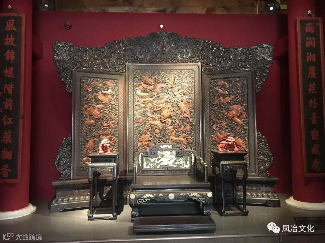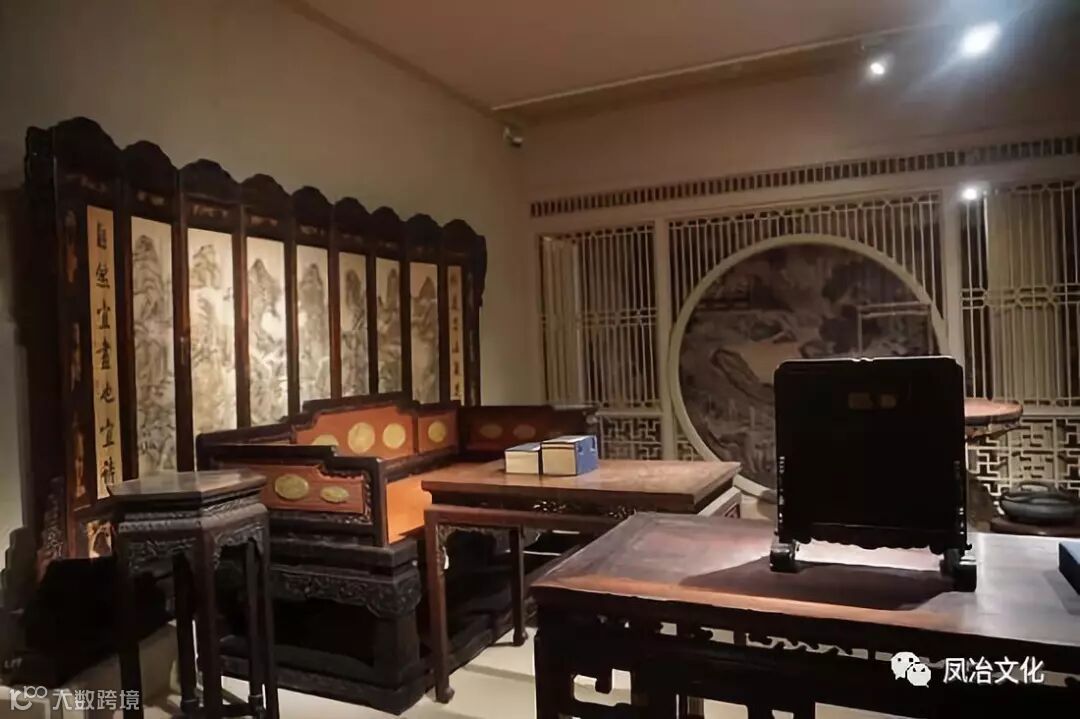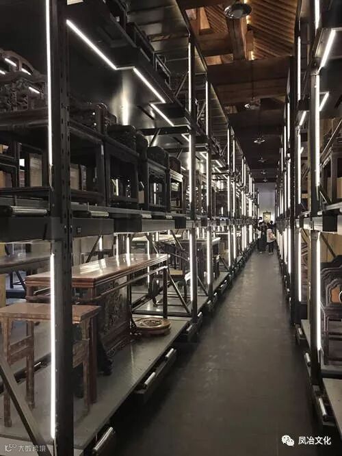 大到3.9米的紫檀木雕龙纹顶竖柜,4.6米世界最大黄花梨条案,小到A4纸大小的鱼缸插屏,每一件背后都是一段皇家故事,上面都可能留下帝王的“指纹”。穿过,庭院、书房、琴房等场景,展厅内三层货架一字排开,隔着巨大玻璃幕墙,桌、椅、条、案、凳、座墩……中式家具的款式应有尽有。