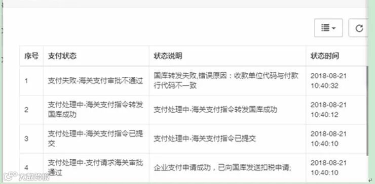 答:海关设置自动审核(同时也是允许使用新支付业务的开关),银行是人工审核。