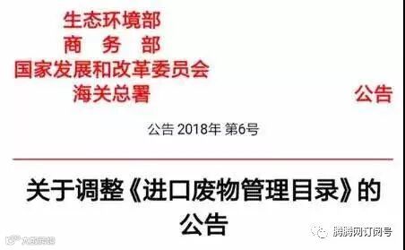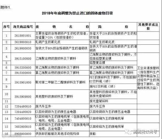 1.2018年年底调整为禁止进口的固体废物目录