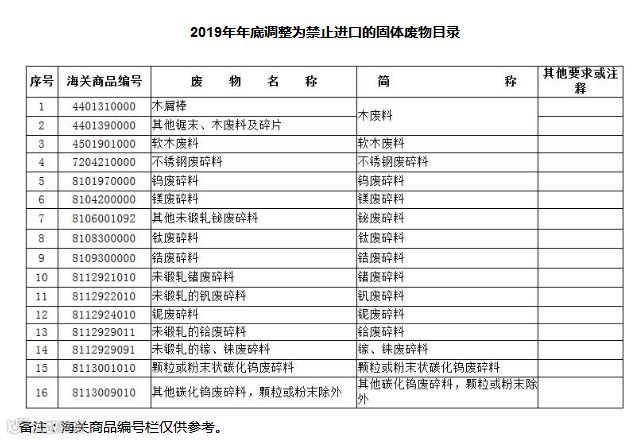 2.2019年年底调整为禁止进口的固体废物目录