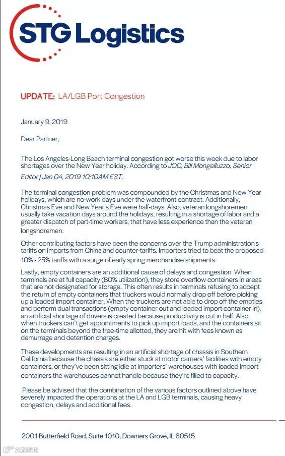 日前美国一家领先的物流服务公司STG Logistics给客户的公告中,分析了持续拥堵的三个原因。