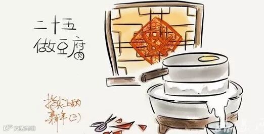 过去的习俗中,豆腐是过年的必备食品,因为按照老规矩,大年三十是不能动刀子的,因此人们就要想办法储存好过年的食物,而豆腐的腐也跟富裕的富谐音,也表达了人们通过谐音,对未来生活的美好盼望