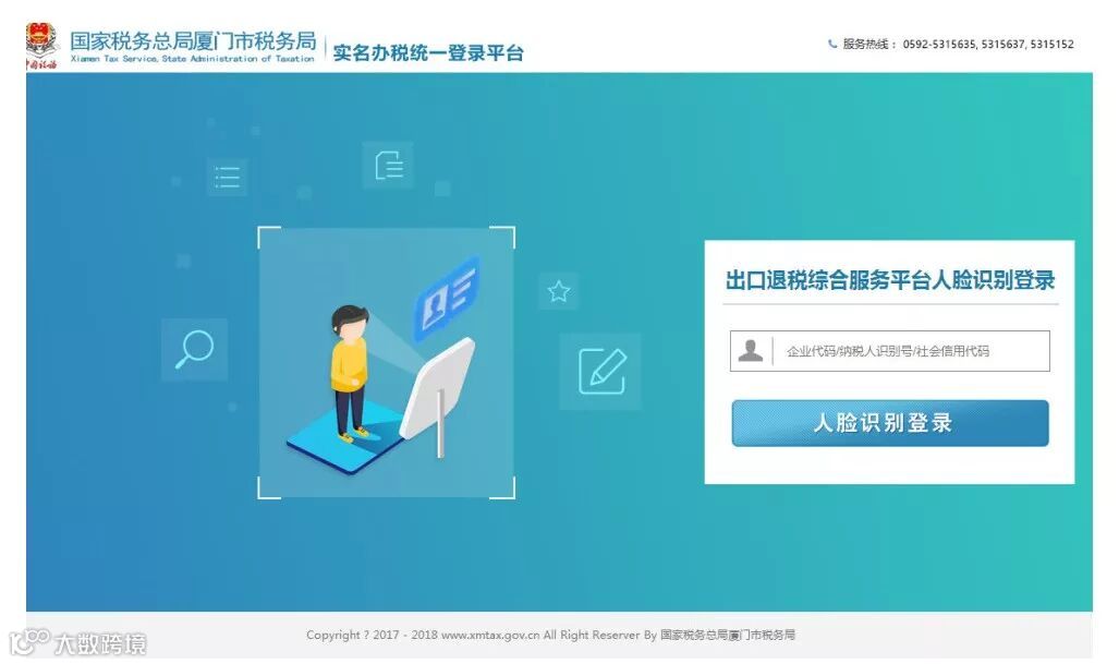 ①通过国家税务总局厦门市税务局官方网站,进入出口退税综合服务平台登录界面,点击登录。