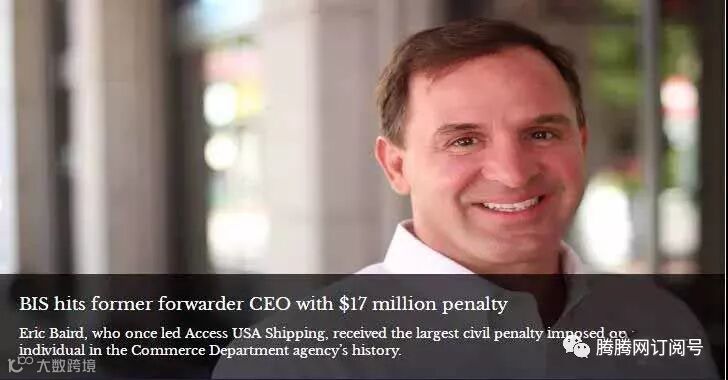 据获悉,美国一家总部位于佛罗里达州萨拉索塔的货代公司Access USA Shipping的负责人埃里克·贝尔德(Eric Baird)因违规走私出口,受到了美国商务部机构历史上对个人施加的最大民事处罚。罚金高达1700万美金!!