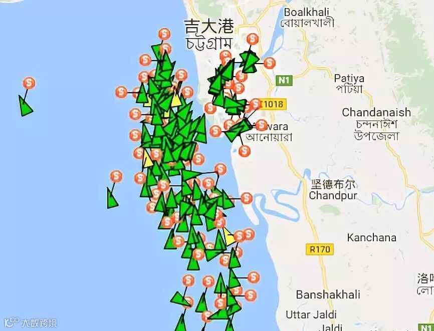 据获悉,孟加拉最大港口——吉大港过去两周发生严重的船舶拥堵,迫使船舶排队等待至多10天!其中平均每天有24艘集装箱船在港口的外锚地等待。