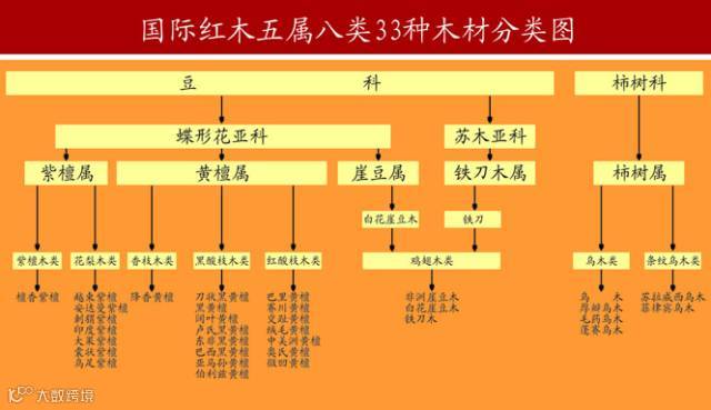 红木为热带地区所产,豆科,紫檀属(pterocarpus)的植物。可分为五属八类三十三种(敲黑板!)。