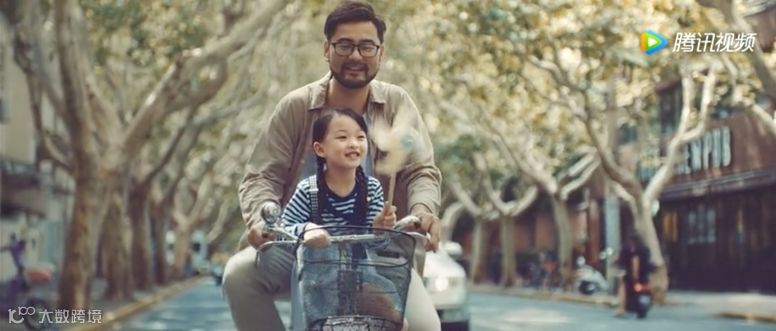 故事开头,一位发量充足的父亲载着女儿骑着老式28式自行车上。很多90后女孩小时候都有坐在爸爸脚踏车出门上学/游玩的经历。
