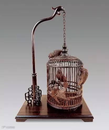 提到鸟笼,就不禁想起一句老话——“贝勒爷手中三件宝,核桃、扳指、笼中鸟”,有美鸟必有佳笼相配,清中期,随着政局的稳定,国家日益富足,文化艺术繁荣,各种禽鸟犬类的豢养就成为满清贵族家庭的重要活动内容之一。在这种富足的经济文化背景下,笼养一些禽鸟自然也就成为满清纨绔子弟的真实写照。