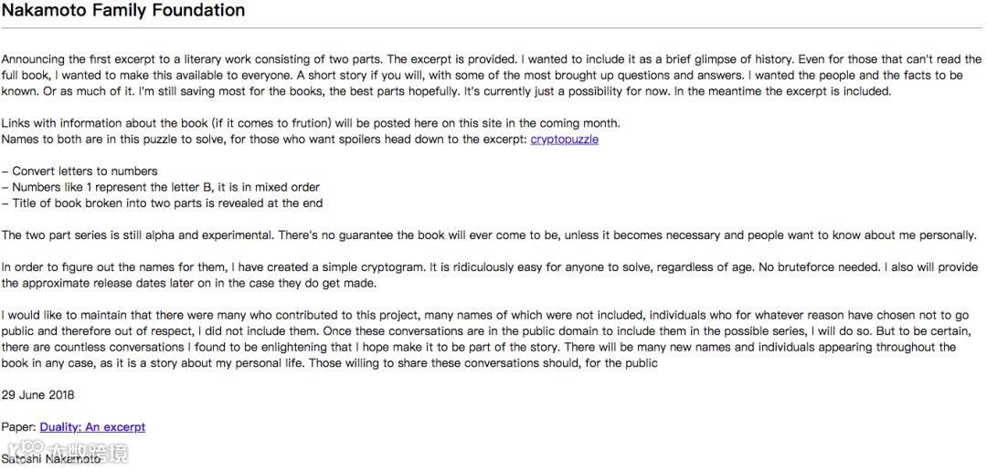 近日出现一家可能与中本聪有关的网站,上面出现了一条加密信息。